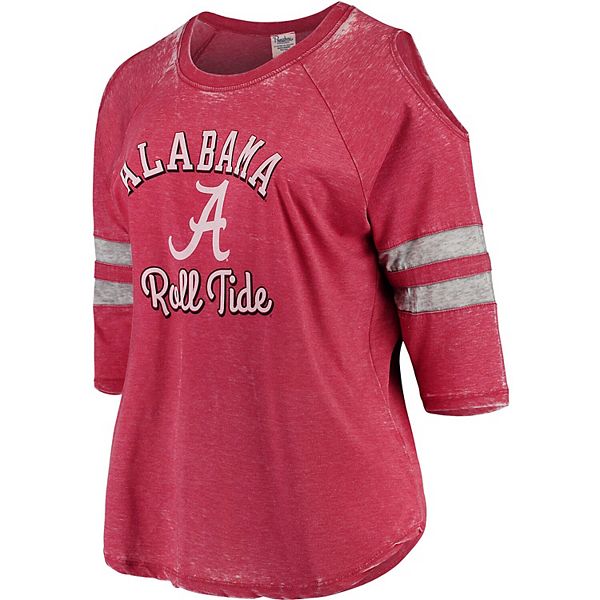 Women S Pressbox Crimson Alabama Crimson Tide Plus Size Vintage Wash Cold Shoulder Raglan 3 4 Sleeve T Shirt
